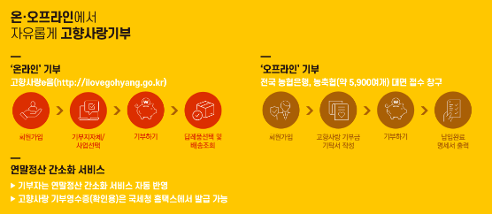 고향사랑 기부제는 온/오프라인 모두에서 자유롭게 가능합니다.