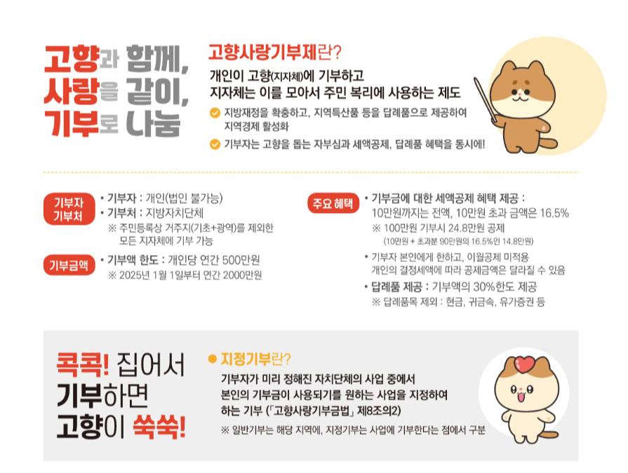 도움이 됨과동시에 기부자는 고향을 돕는 자부심과 세액공제, 답례품 혜택을 동시에 받을 수 있습니다.