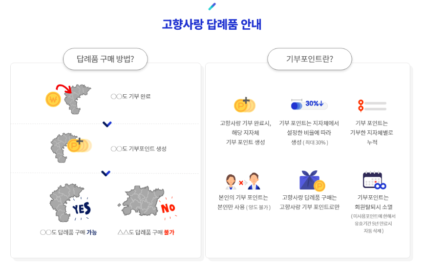 ㅇㅇ도 기부시, ㅇㅇ도 답례품 구매만 가능하며 ㅁㅁ도 답례품 구매는 불가합니다.