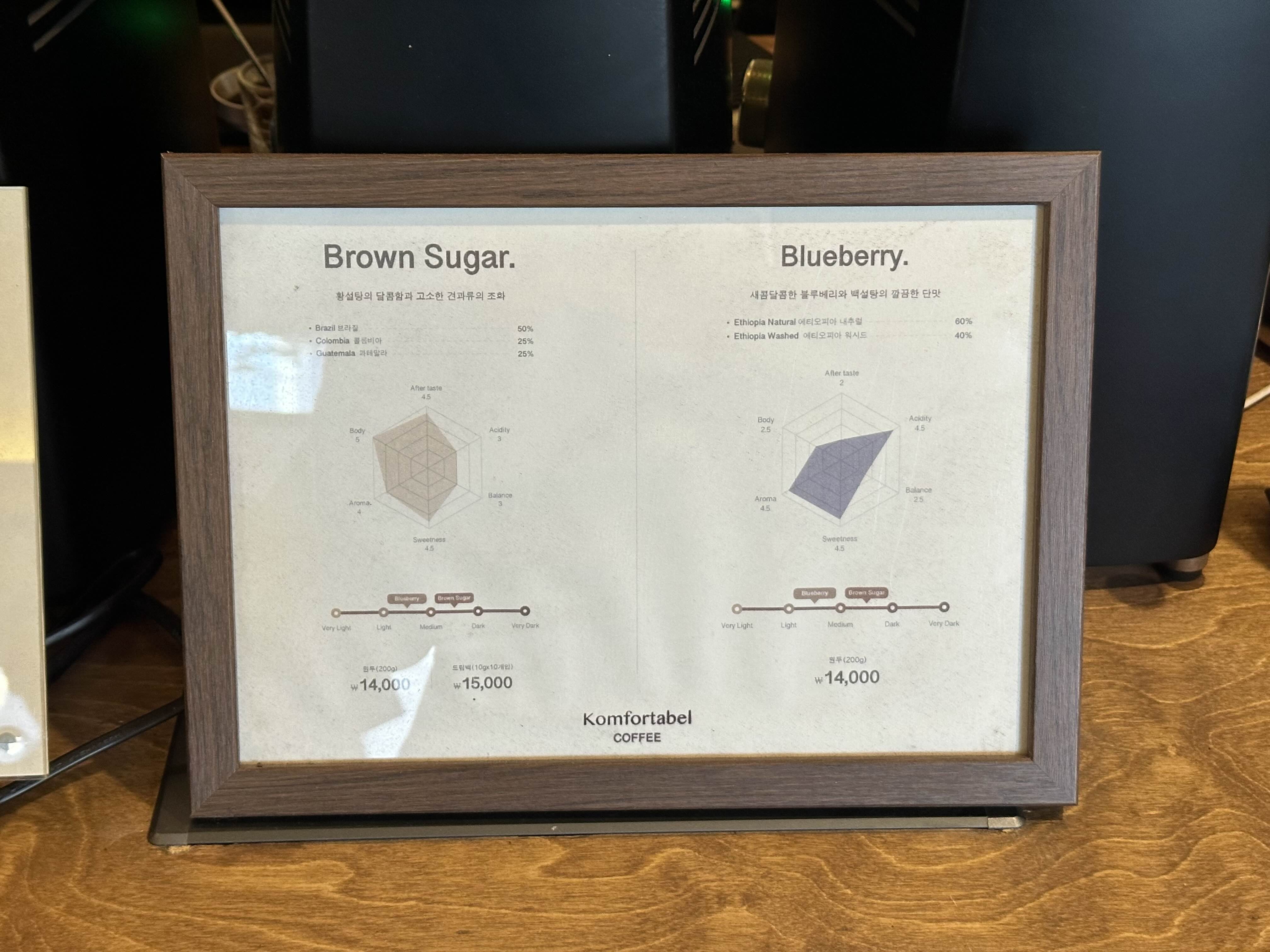 고소한 맛이 강한 브라운슈가원두와 상큼한 블루베리원두 중 선택 가능합니다.