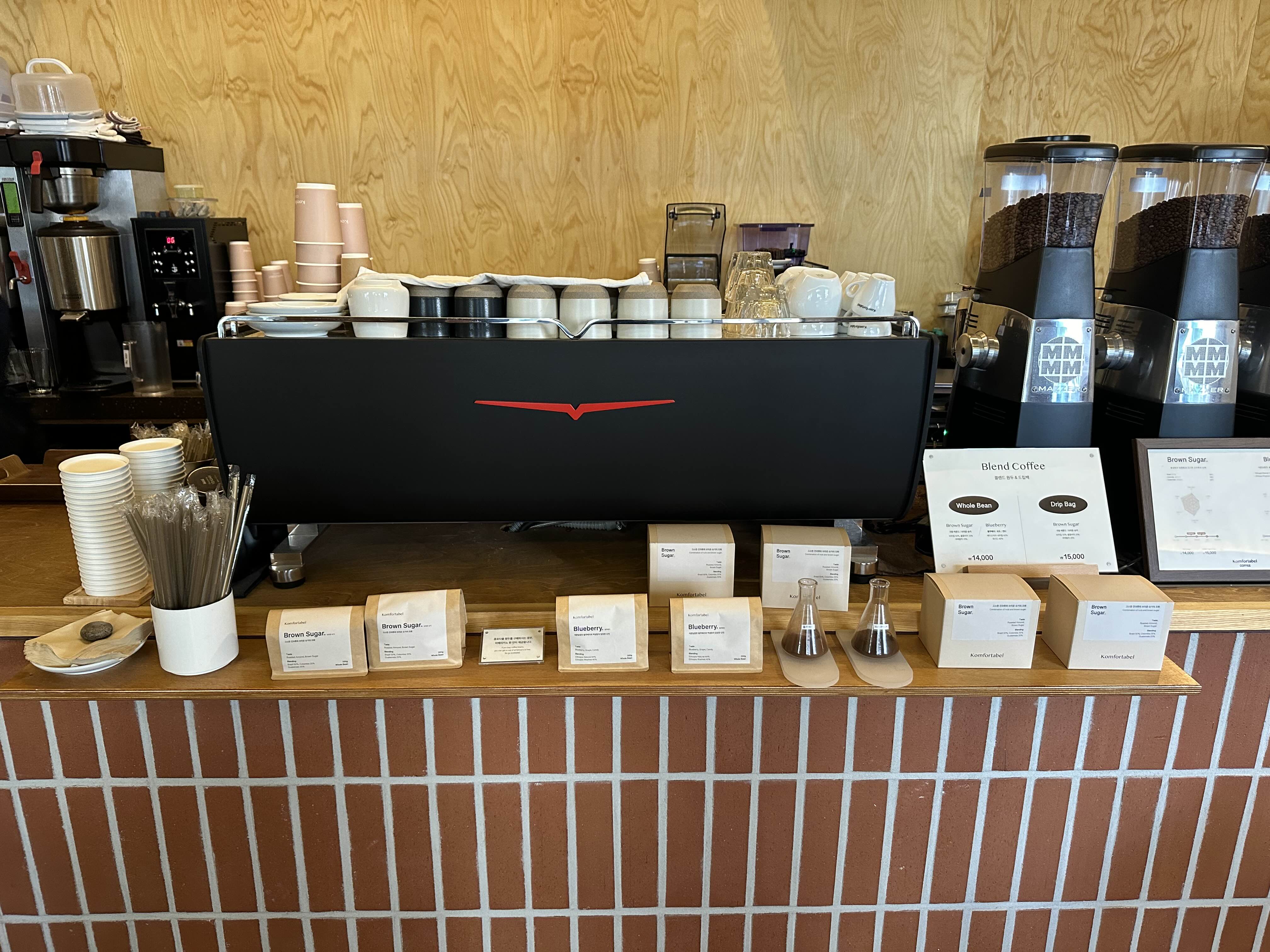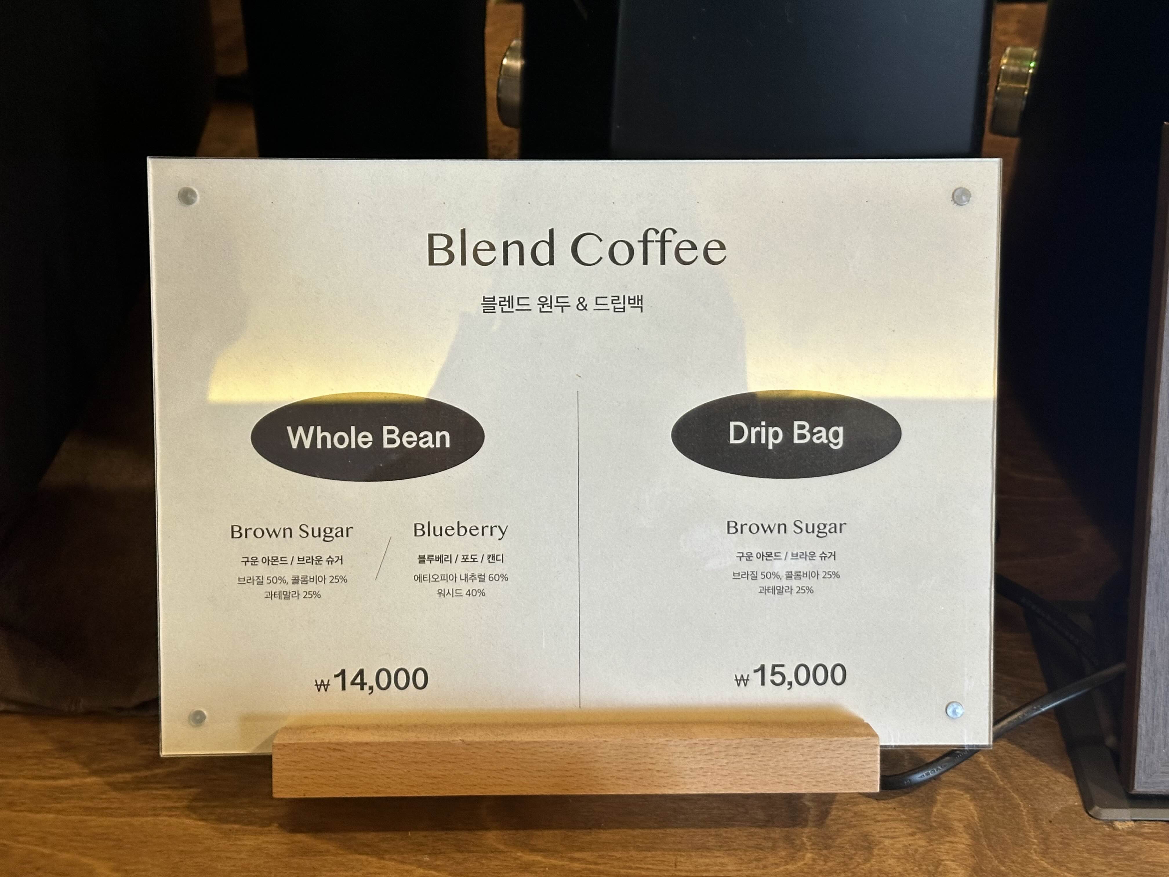 앞에는 판매하는 원두와 드립백 등이 있어요.