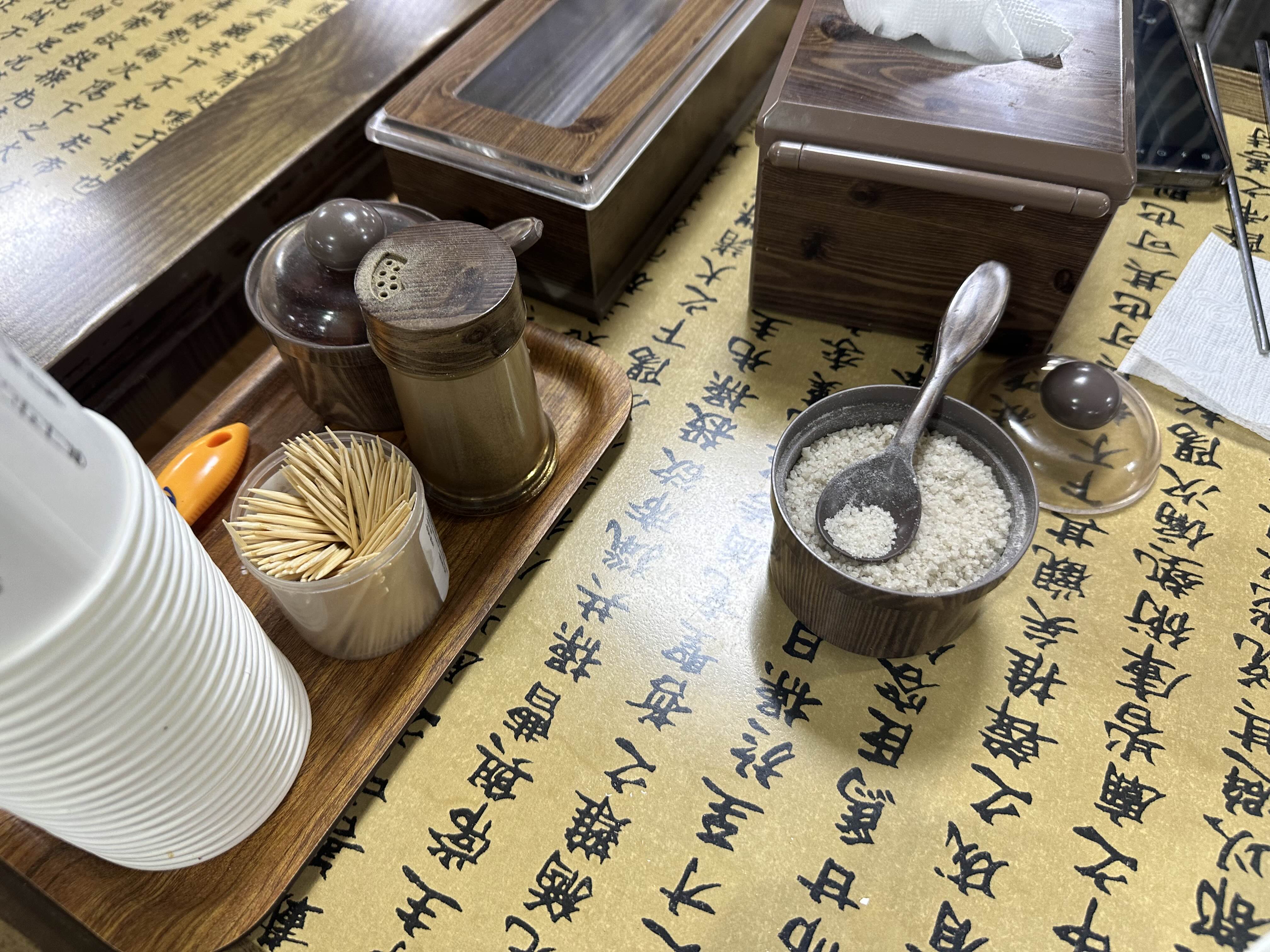 간을 맞출 수 있도록 소금과 후추가 비치되어있어요.