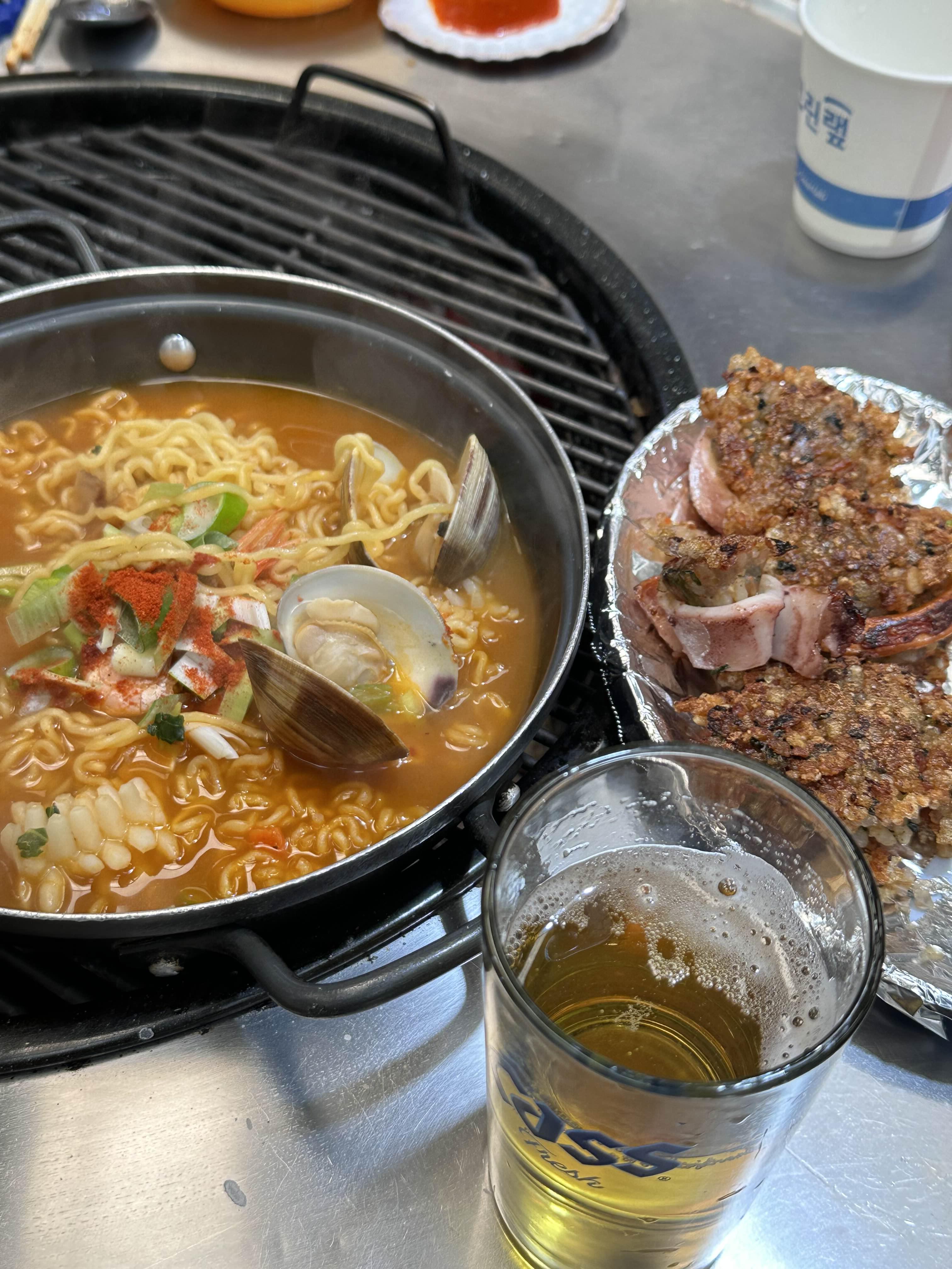 가리비구이 소, 오징어순대1, 해물라면1 시켰습니다.