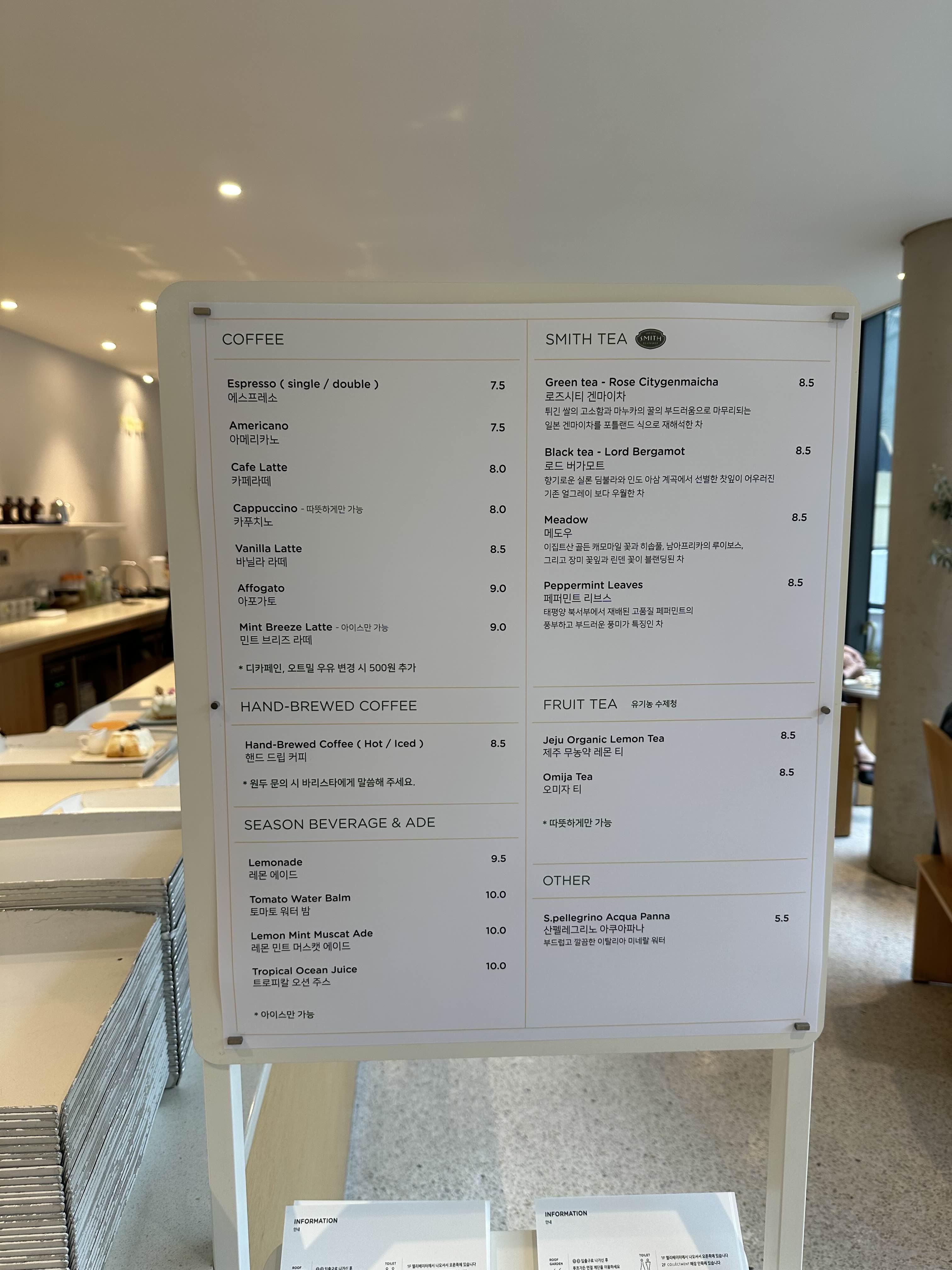 음료 메뉴입니다. 커피, 핸드드립, 시즌 메뉴, 티 등이 준비되어있어요.
