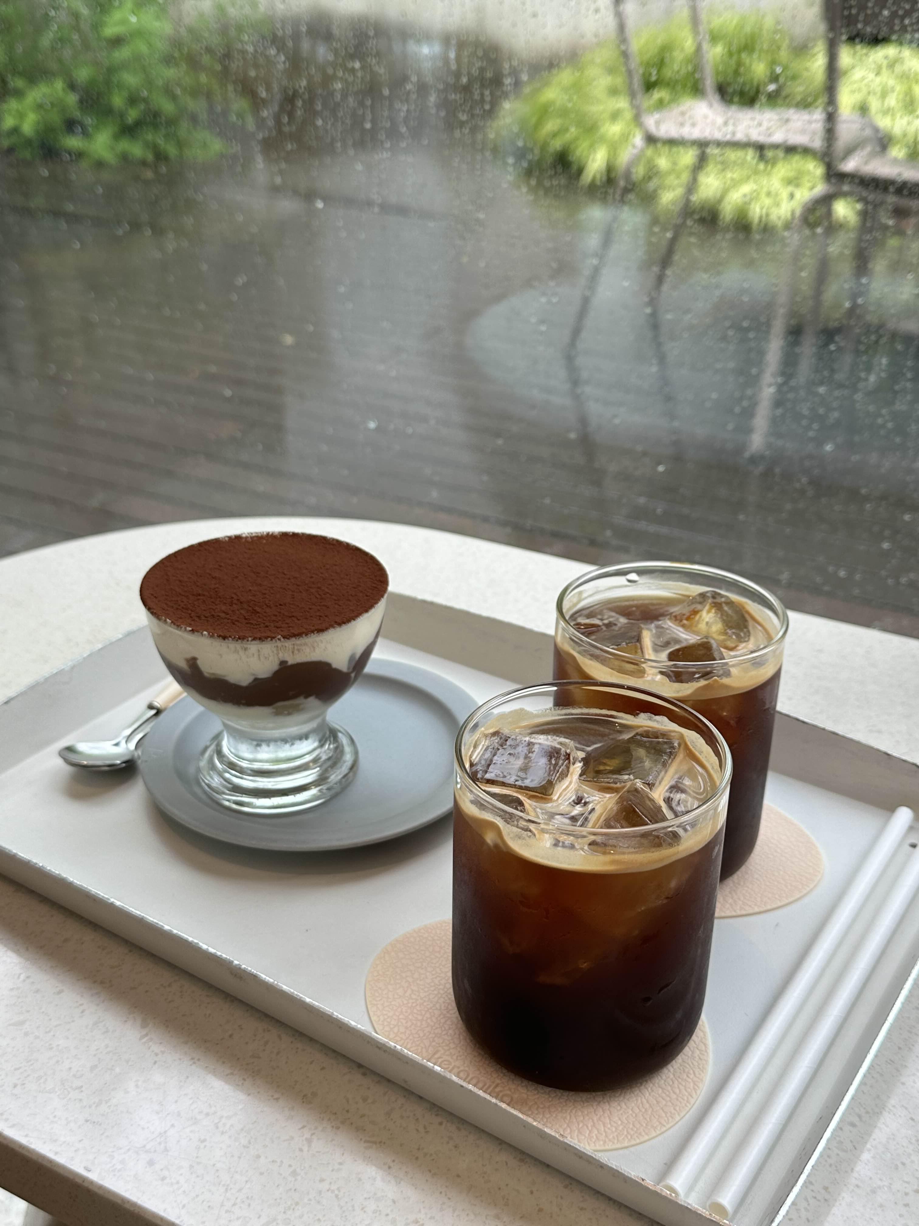 아이스아메리카노 2잔과 두유 티라미수를 주문했습니다.