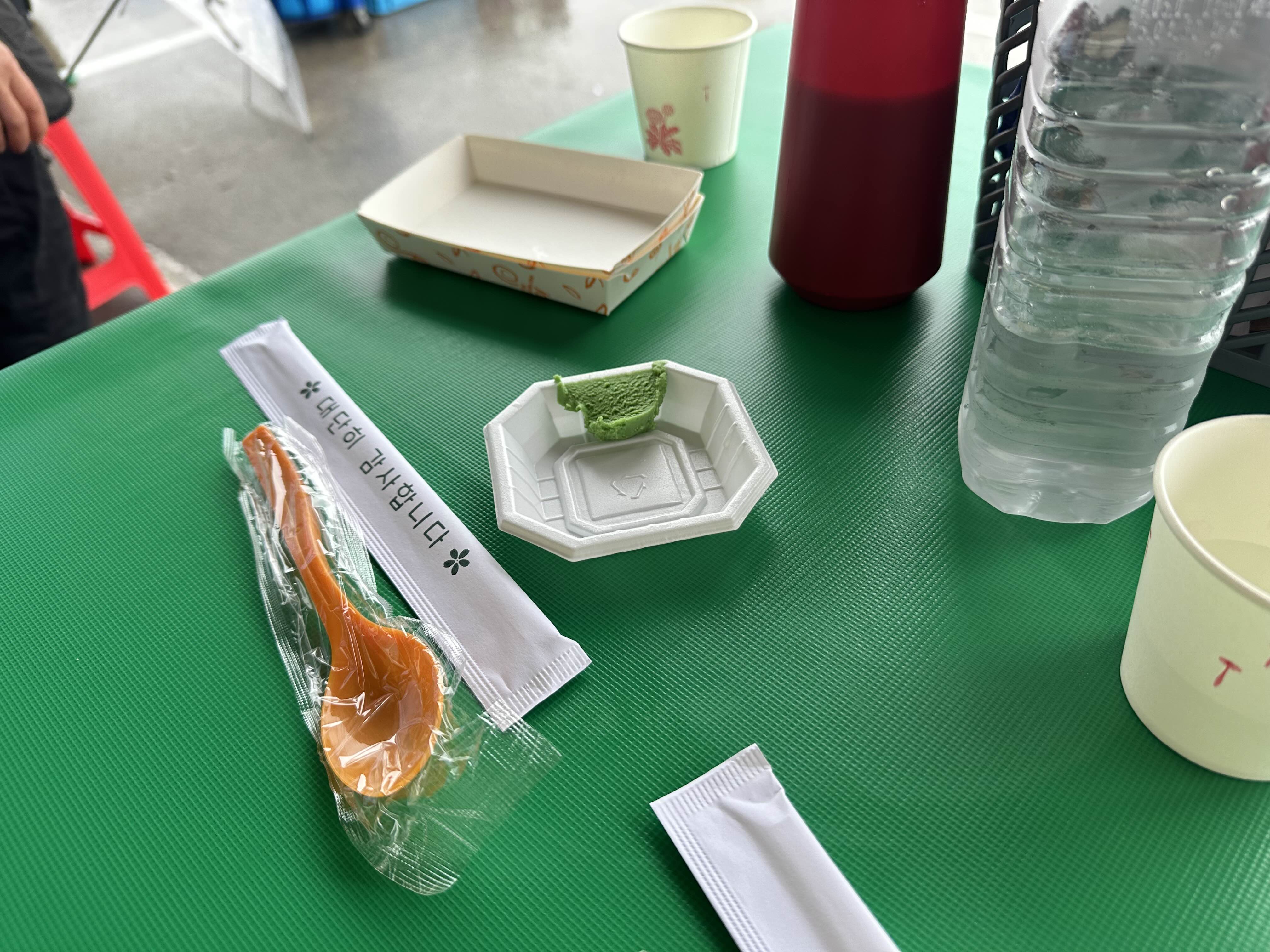 테이블 세팅은 와사비가 든 소스그릇, 앞접시, 물 등을 가져다주셨습니다.