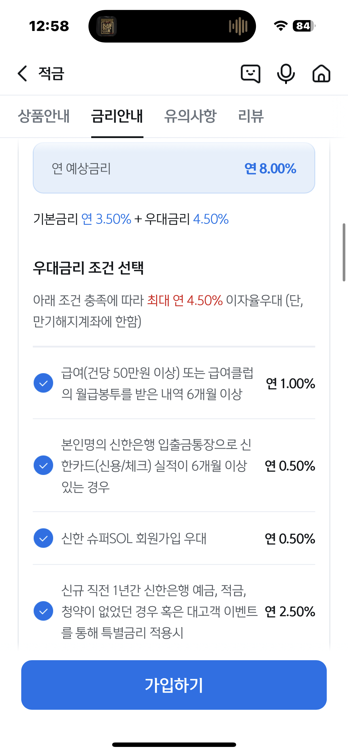 최근에 신한은행에서 나온 특판 적금을 가입했는데요.