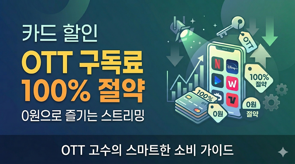 | 카드사 OTT 할인 | OTT 구독료 10~100% 캐시백/청구할인 | 전월 실적 조건 (30만~70만원 이상), 월 할인 한도 (5천원~2만원), 특정 OTT 제한 여부 확인 |
