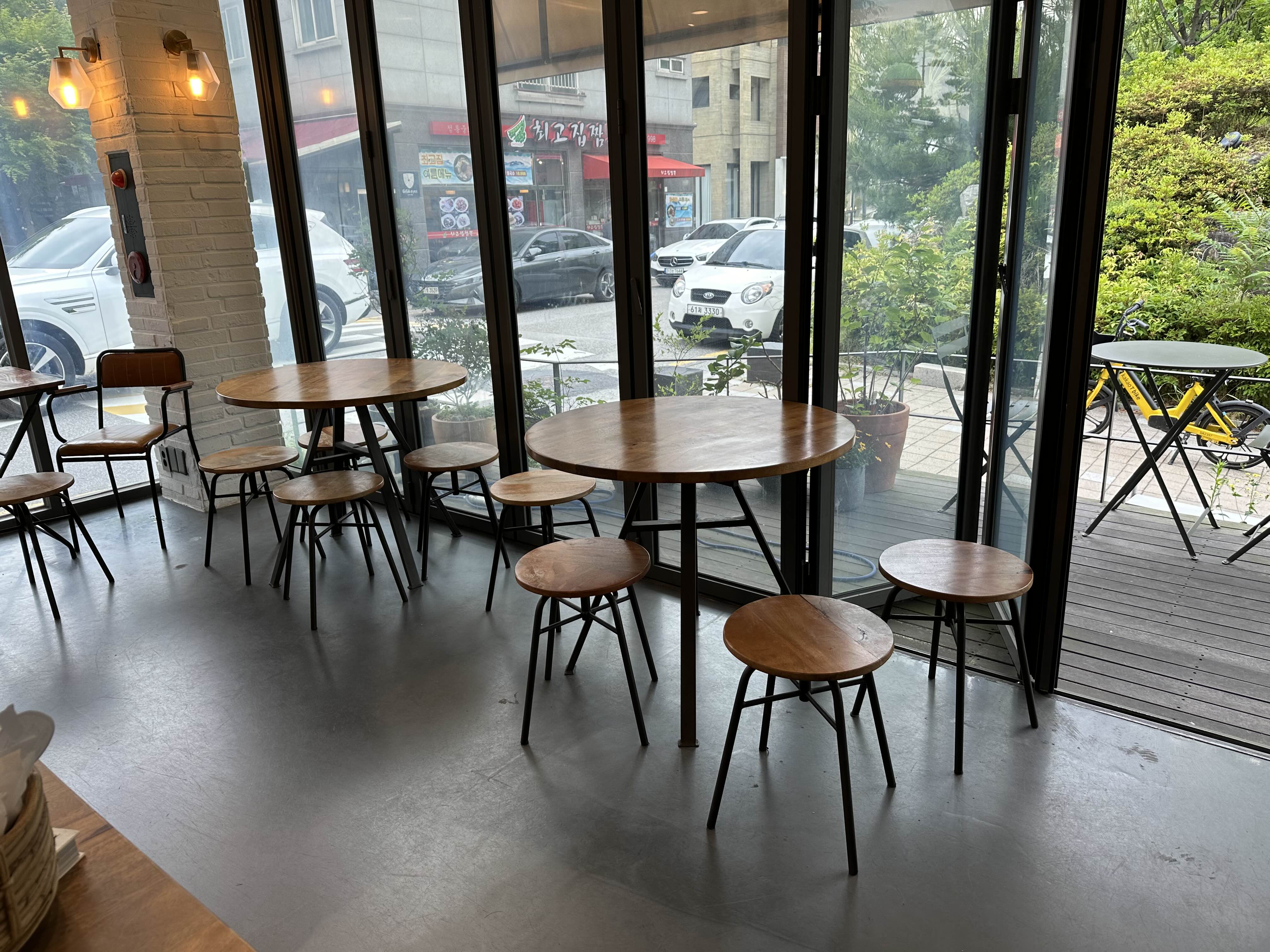 내부와 테라스에 앉아서 먹을 공간이 있습니다.