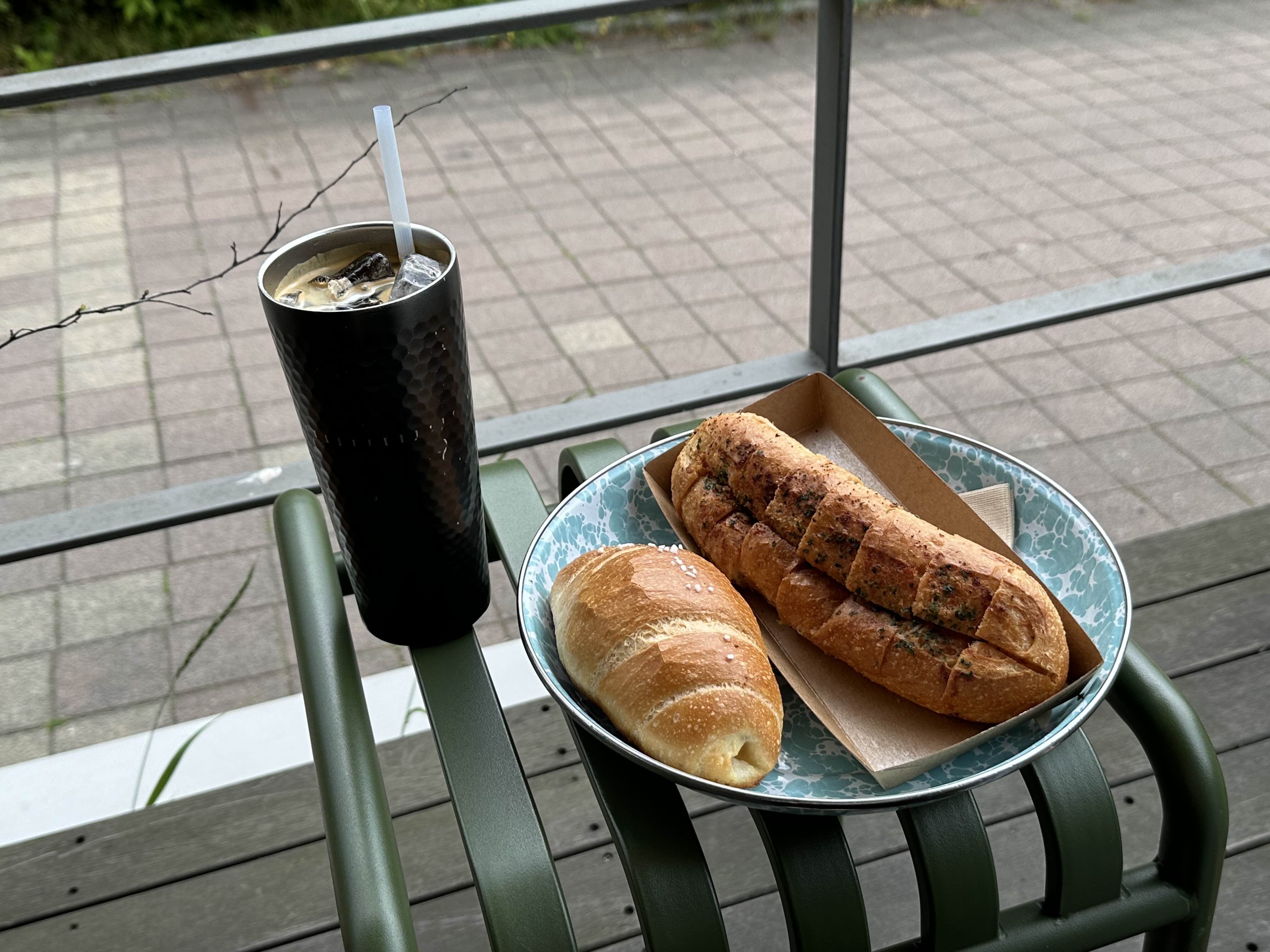 갓나온 소금빵을 커피와 함께 먹으니 너무 맛있네요.