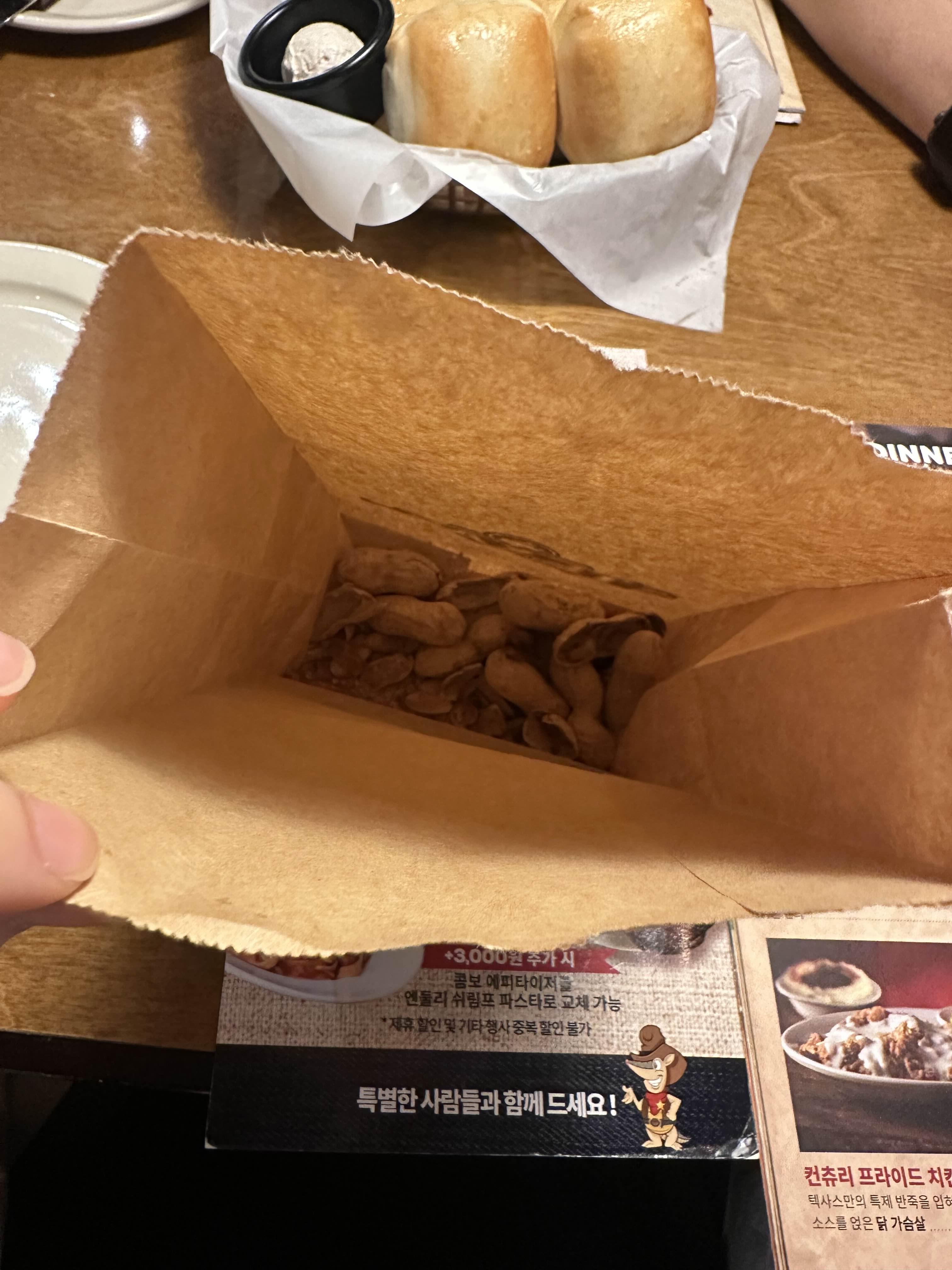 땅콩과 식전빵은 무제한 리필이 가능합니다.