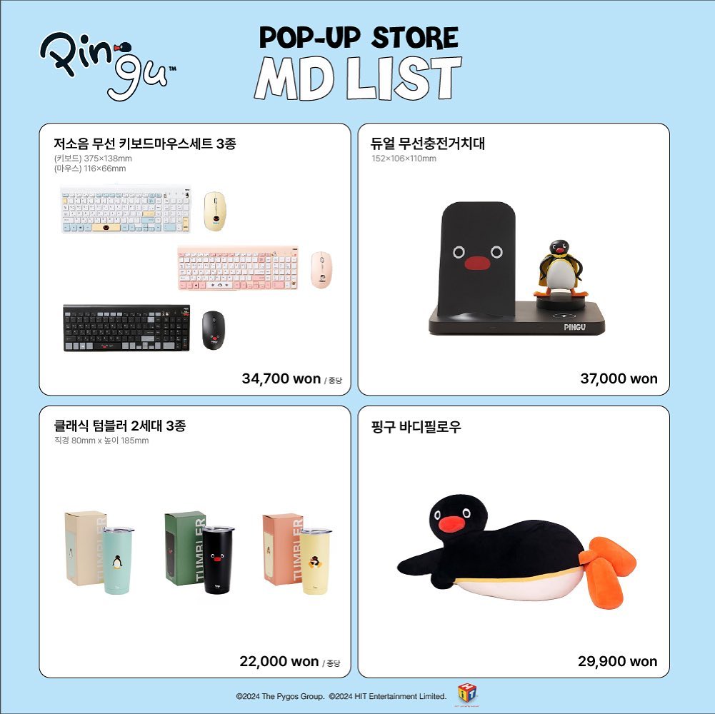 - 핑구 텀블러: 실용적인 텀블러에 핑구 디자인까지! 어디서나 핑구와 함께할 수 있답니다.