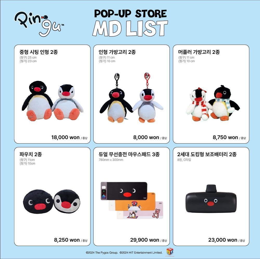 - 핑구 한정판 인형: 귀여운 핑구가 다양한 포즈로 출시됐어요. 덕후라면 하나쯤 소장각!