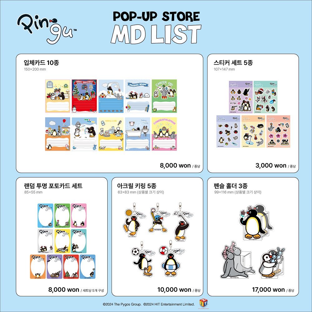 - 핑구 문구 세트: 메모지, 펜, 스티커 등 핑구로 가득 채워진 문구 세트는 두고두고 쓰기 좋아요.