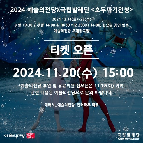호두까기인형 티켓은 24.11.20(수) 15시에 오픈됩니다.