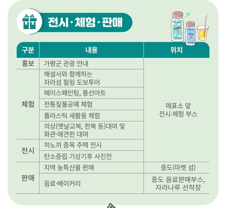 • 장소: 경기도 가평군 가평읍 자라섬로 60
