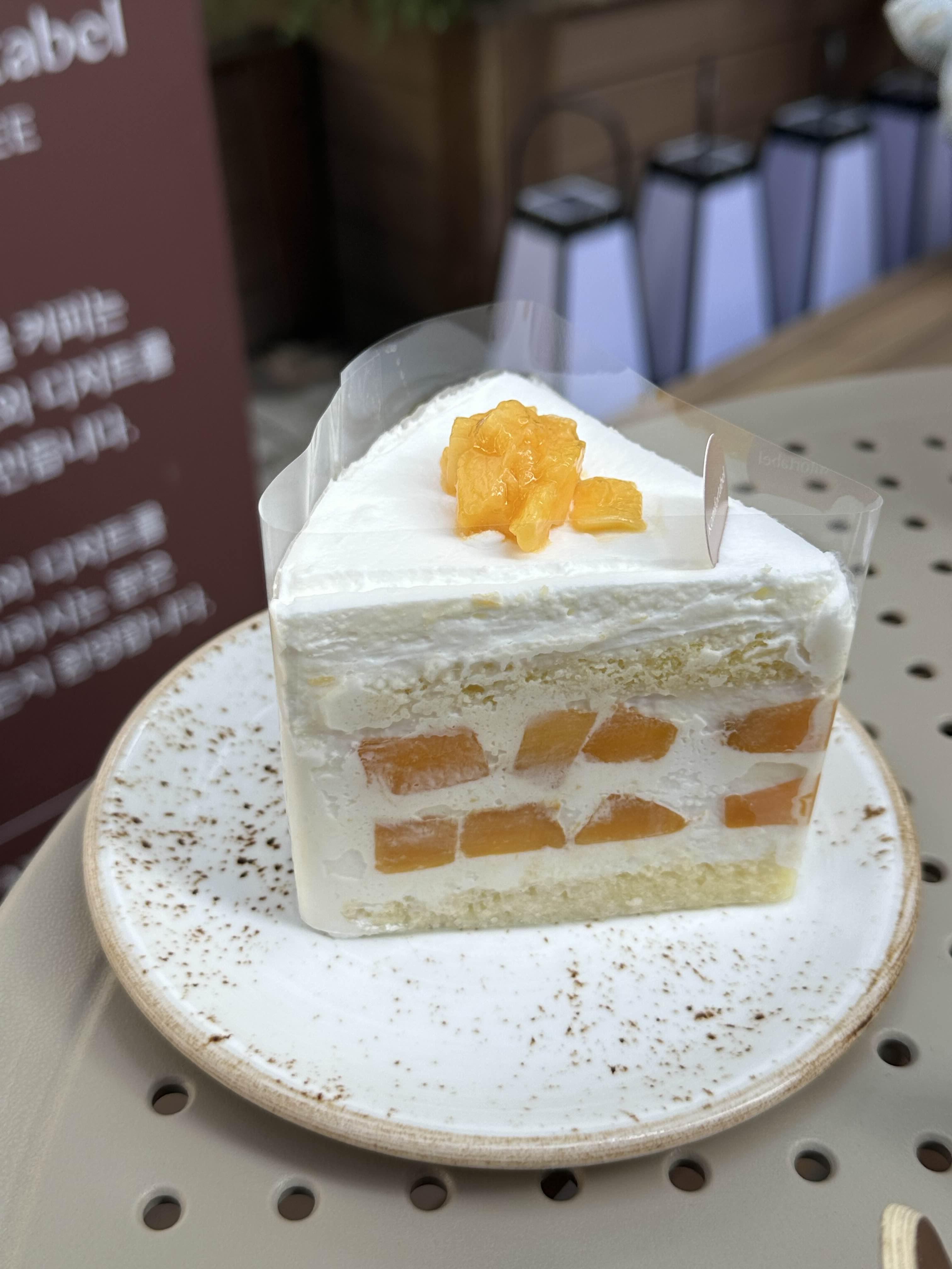 달콤한 생망고가 잔뜩 든 망고케이크입니다.